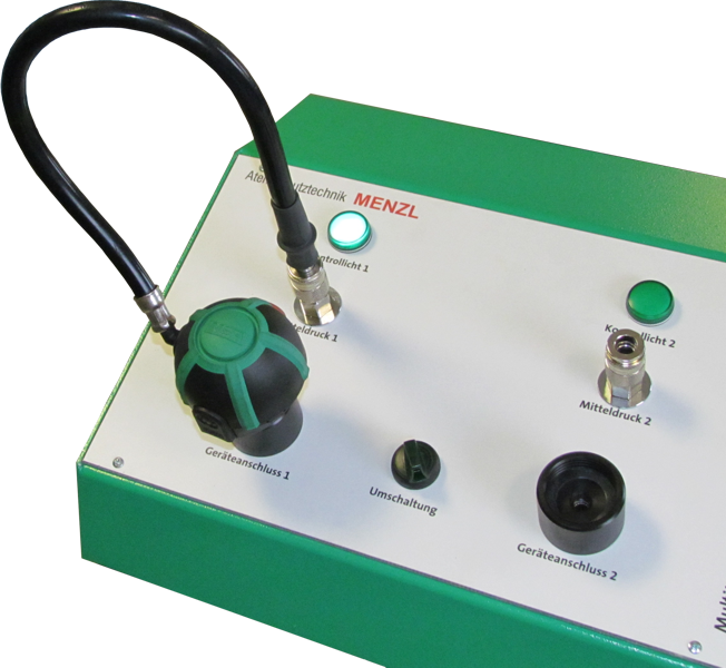 Dank der beiden Geräteanschlüsse und des computergestützten automatisierten Prüfablaufes ist ein abwechselndes Prüfen von Lungenautomaten möglich. Während die Prüfung eines Lungenautomaten durchgeführt wird, kann bereits der nächste zur Prüfung vorbereitet werden.