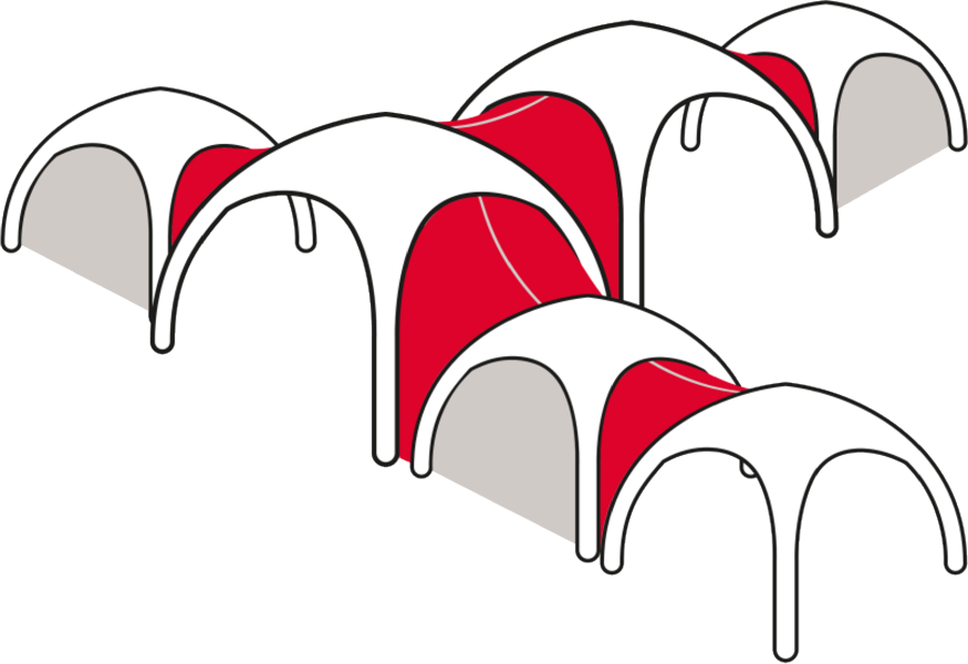 Zelte, auch unterschiedlicher Größen, können mit Hilfe von Verbindungsteilen („Fusion-Panels“) unbegrenzt untereinander verbunden werden, wodurch beliebig große Räumlichkeiten in einer Funktionseinheit möglich sind. Damit erlaubt es diese spezielle Technik, flexibel und schnell auf die Gegebenheiten und räumlichen Erfordernisse vor Ort zu reagieren.