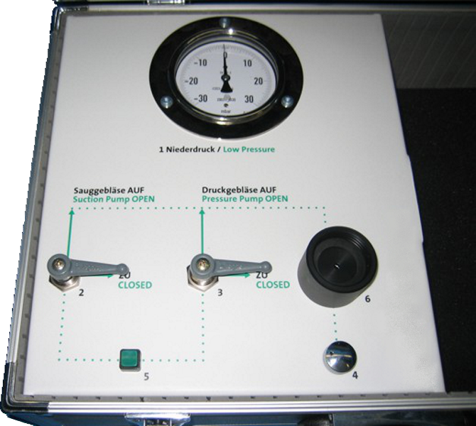 The required levels of positive and negative pressure as well as the necessary flow rates for opening-pressure tests and closing-pressure tests are supplied by the built-in pump.
