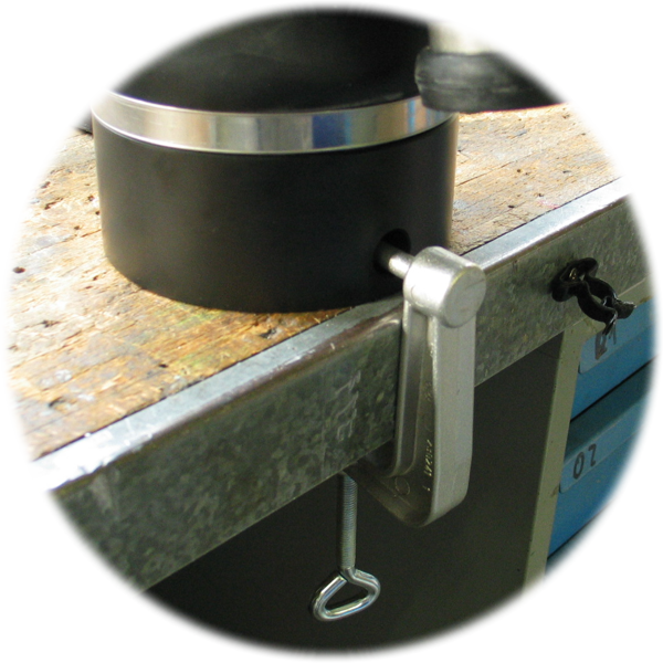 - Zwinge zur Fixierung des Standsockels auf einer Arbeitsplatte